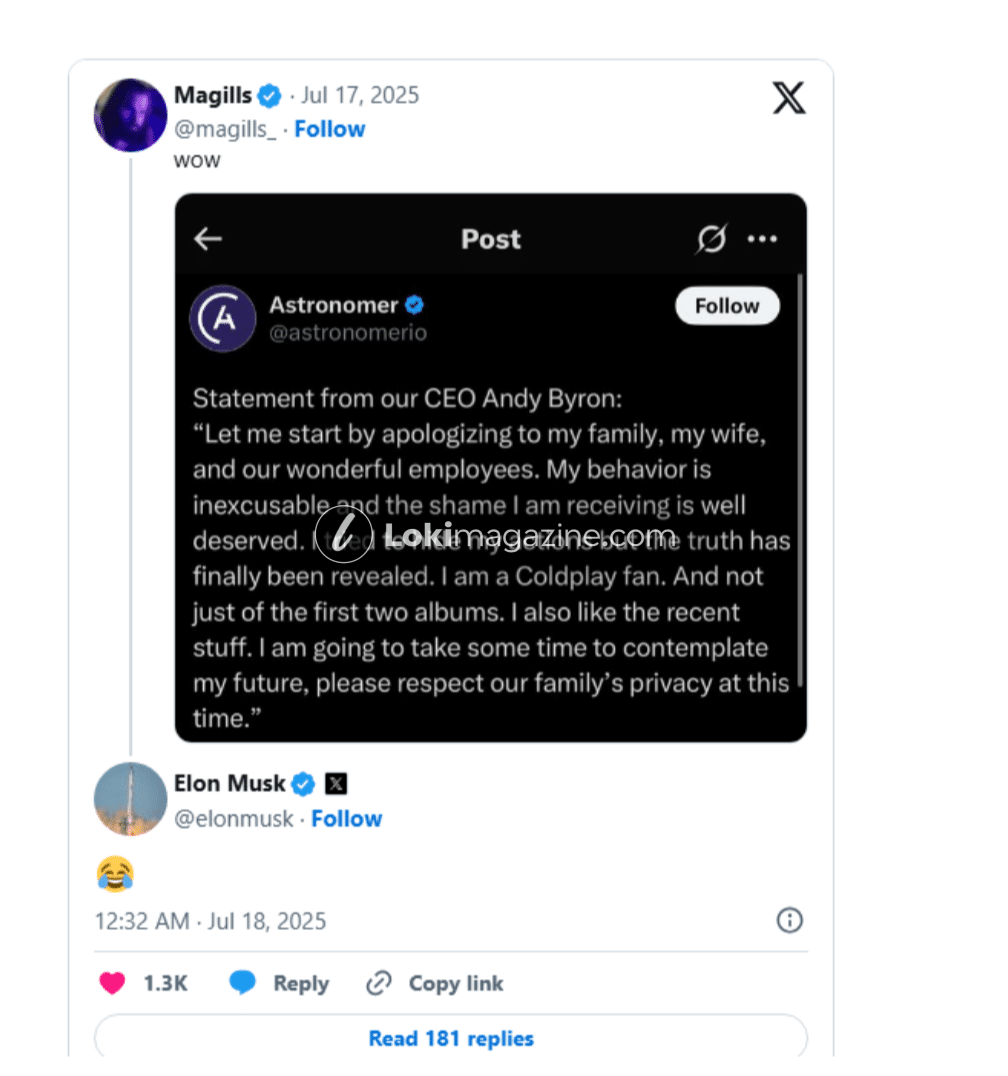 Postimi në të cilin ai reagoi me një emoji dyshohet se tregon një postim faljeje të rremë të bërë nga emri zyrtar i Astronomer.