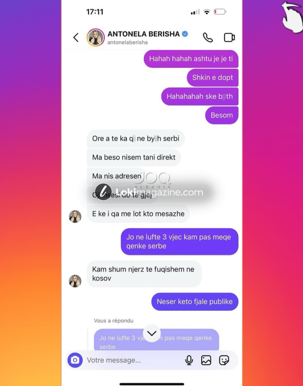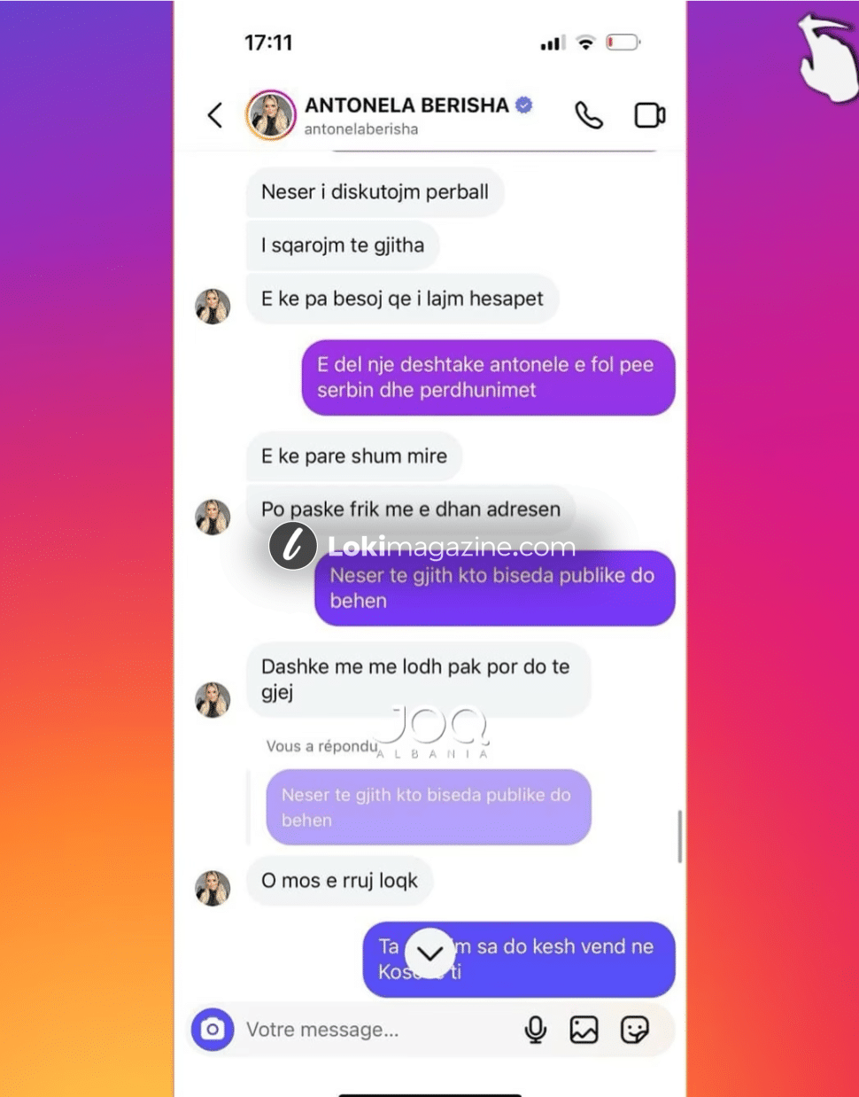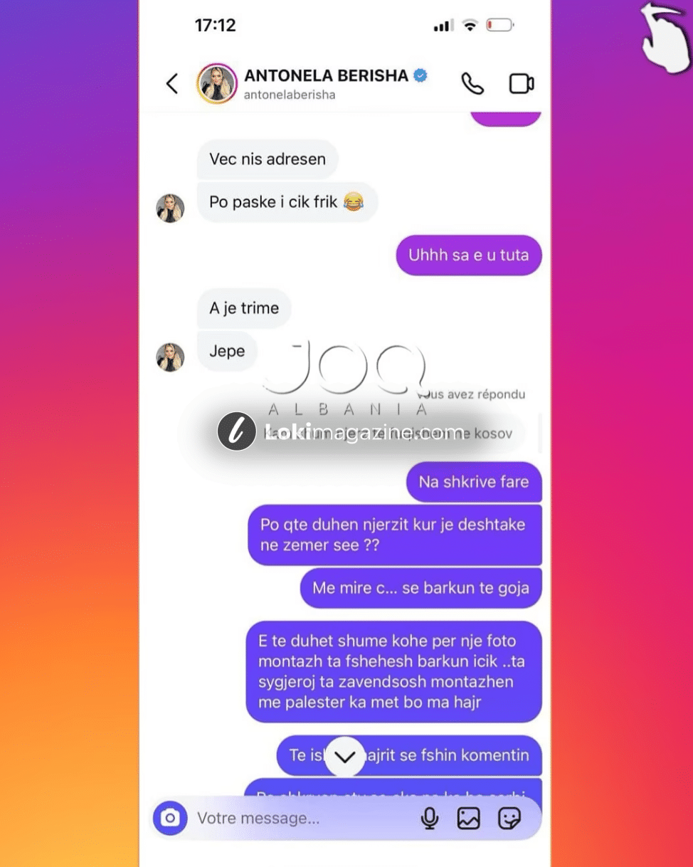 Ish-konkurrentja e emisionit “Për’puthen”, Antonela Berisha, është vënë sërish në qendër të vëmendjes pas një përplasjeje verbale në rrjetet sociale me një ndjekëse nga Kosova.