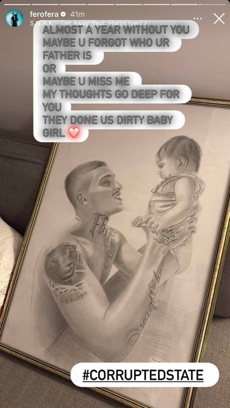 Në një story në Instagram, Fero postoi një portret të vizatuar të vetes dhe vogëlushes, me mbishkrimin: