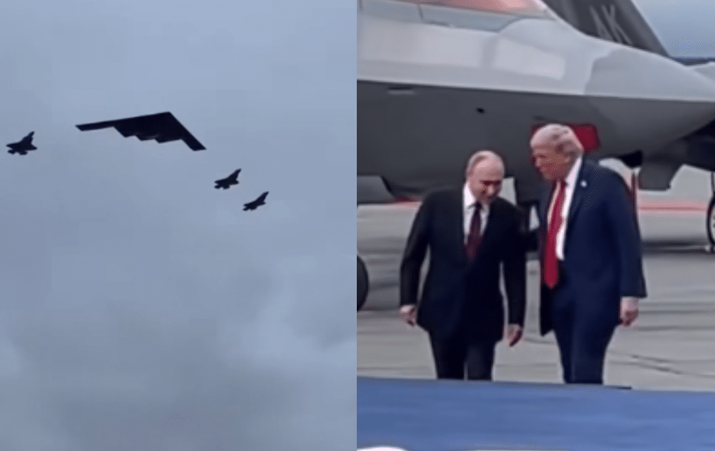 Gjatë momentit ku dy liderët u përshëndetën, mbi kokën e Putinit kaloi një bombardues B-2 Spirit, i shoqëruar nga katër avionë luftarakë F-35, ndërsa F-22 ishin vendosur rreth tapetit të kuq si pjesë e skenografisë mbresëlënëse të ngjarjes.