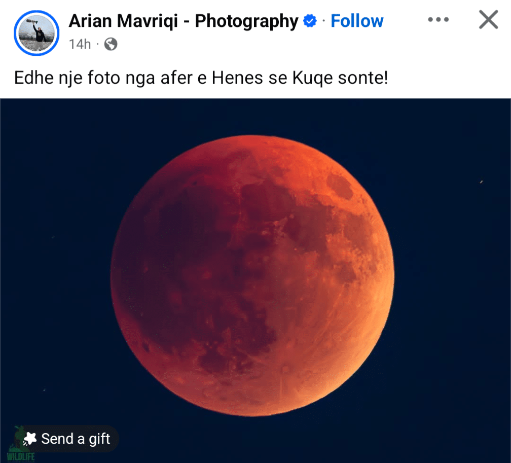 Pamjet përfundimtare janë publikuar nga fotografi Arian Mavriqi, i cili ka ndarë disa fotografi të qarta të momentit kur Hëna mori ngjyrën e kuqërremtë.
