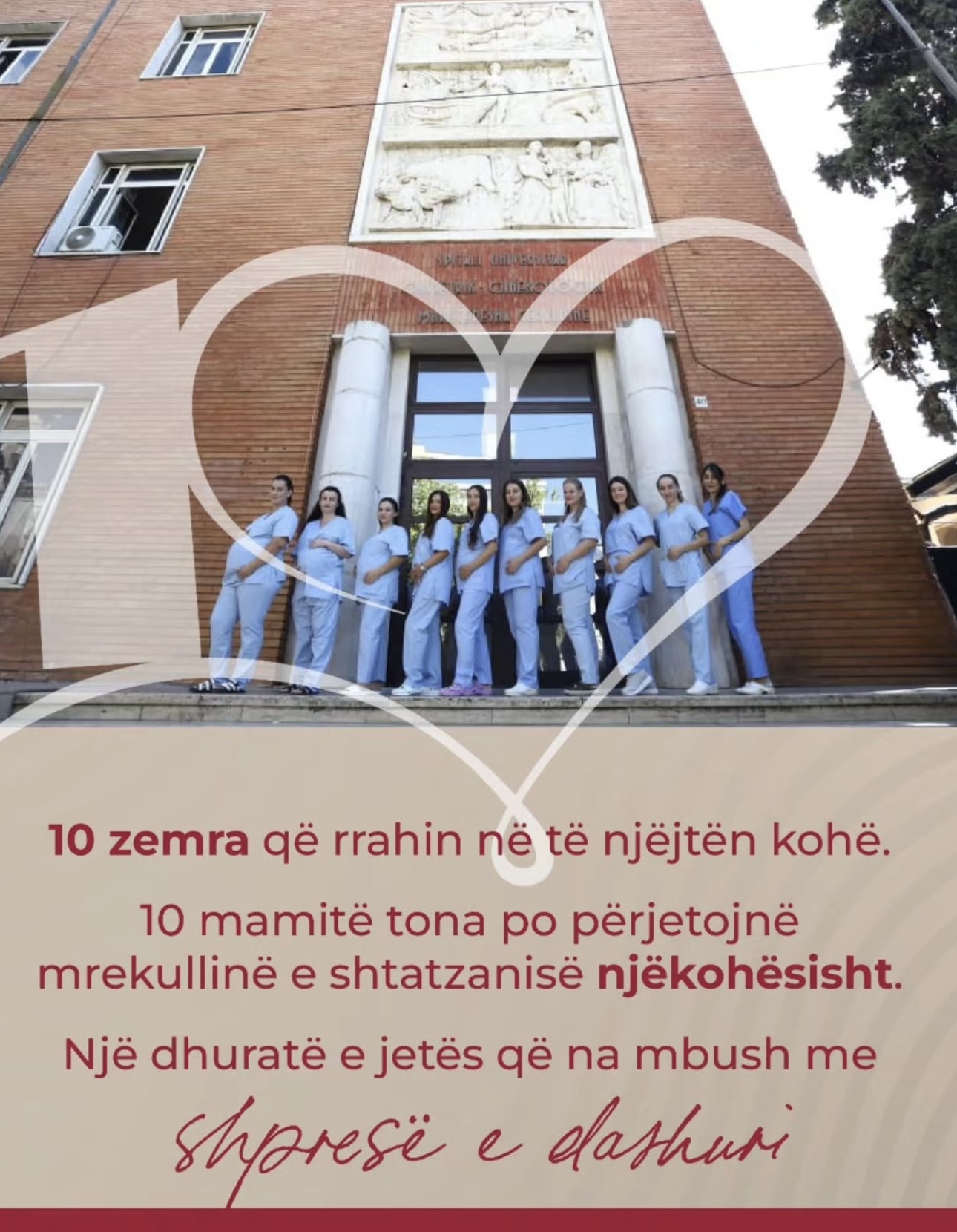 Në postim theksohet se 10 mami të këtij institucioni, të cilat çdo ditë janë në shërbim të nënave dhe foshnjave me përkushtim maksimal, sot mbajnë mbi supe edhe një përgjegjësi më të madhe: jetën që po zhvillohet brenda tyre.
