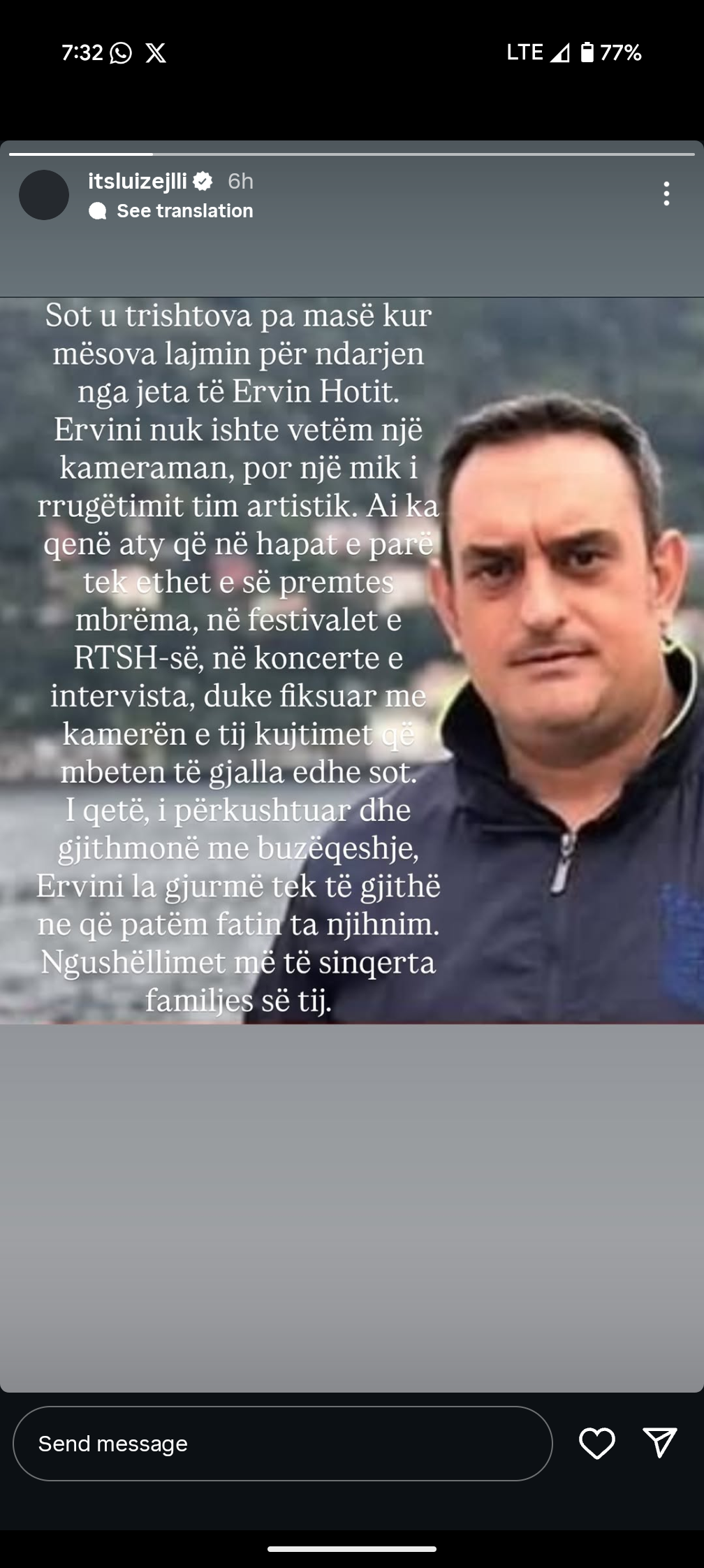 “Sot u trishtova pa masë kur mora lajmin për ndarjen nga jeta të Ervin Hotit. Ervini nuk ishte vetëm një kameraman, por një mik i rrugëtimit tim artistik. Ai ka qenë aty që në hapat e parë tek ‘Ethet e së premtes mbrëma’, në festivalet e RTSH-së, në koncerte e intervista, duke fiksuar me kamerën e tij kujtimet që mbetën të gjalla edhe sot. I qetë, i përkushtuar dhe gjithmonë me buzëqeshje,” ka shkruar Ejlli.