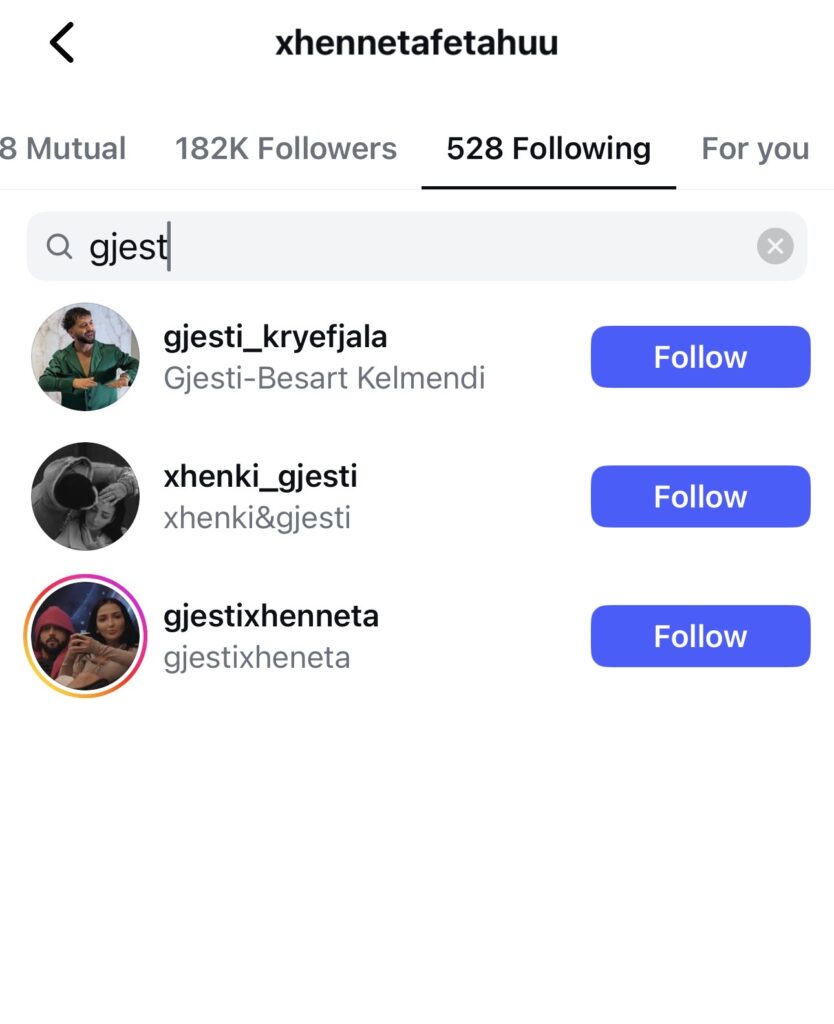 Kohët e fundit, vëmendja e publikut u fokusua te një detaj i veçantë. Xheneta, pavarësisht ndarjes, vazhdon të ndjekë në Instagram faqe që i janë dedikuar çiftit të tyre gjatë kohës që ishin në “BBVK”.
