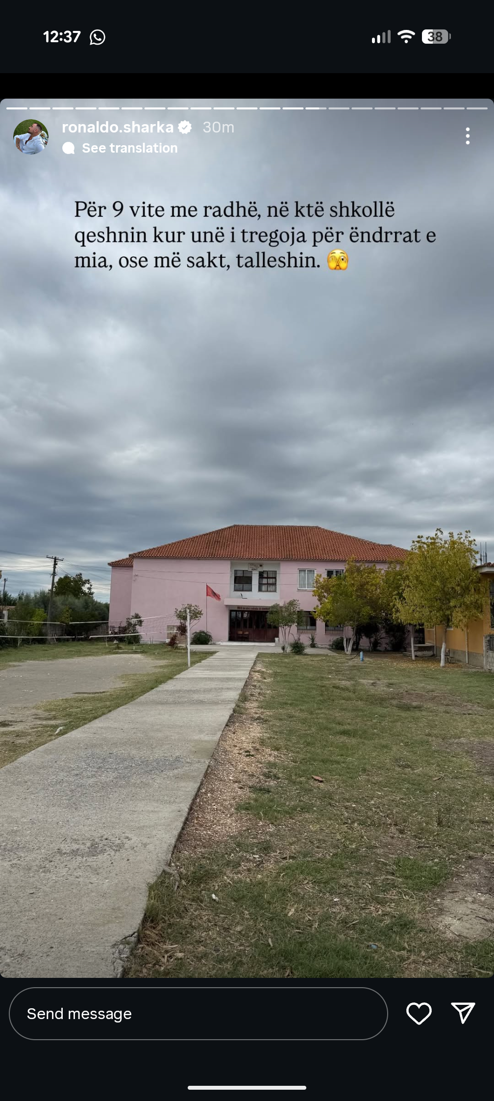 Rrëfimi i tij filloi me një foto nga shkolla, ku ai shkroi: “Për 9 vite me radhë, në këtë shkollë qeshnin kur unë i tregoja për ëndrrat e mia, ose më saktë, talleshin.”