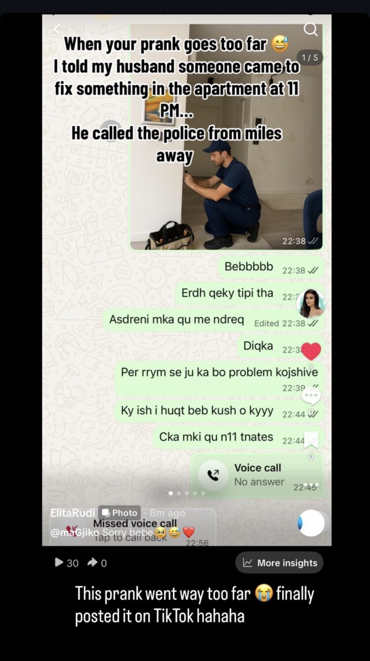 Elita Rudi ka bërë që interneti të shpërthejë nga të qeshurat, pasi vendosi t’i luajë një nga shakatë më të guximshme bashkëshortit të saj, reperit Gjiko.
