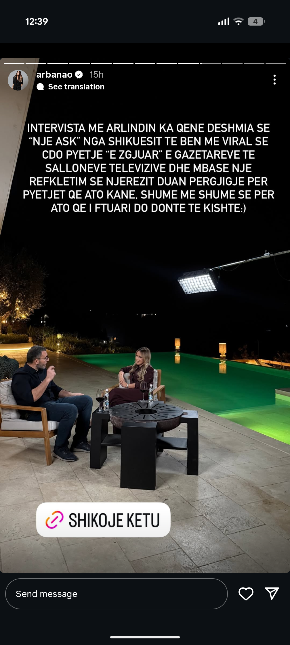 Pas transmetimit, Arbana Osmani e vlerësoi Qorin për qëndrimin e tij, duke shkruar: “Thënë kjo janë të paktë të ftuarit si @arlindqori që pranojnë të përgjigjen live çdo pyetje që mund të vijë nga një i panjohur në një Ask Instagrami. Bravo vërtet. Të rrallë janë njerëzit kaq ‘të lirë’ në këtë vend.”