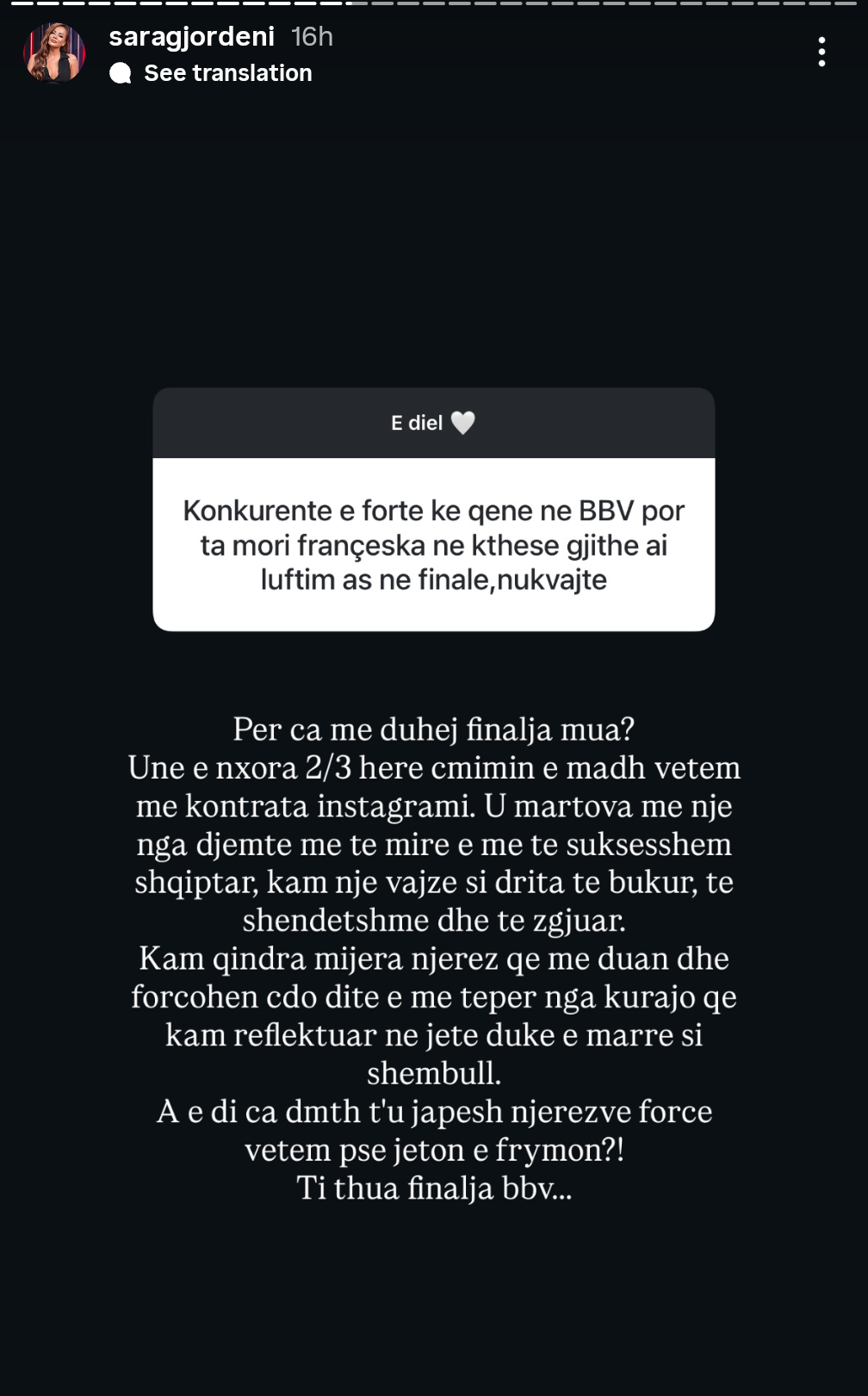 Sara u përgjigj ashpër duke theksuar suksesin e saj pas reality show-t: “Për çfarë më duhej finalja mua? Unë e nxora 2/3 herë çmimin e madh vetëm me kontrata Instagrami.”