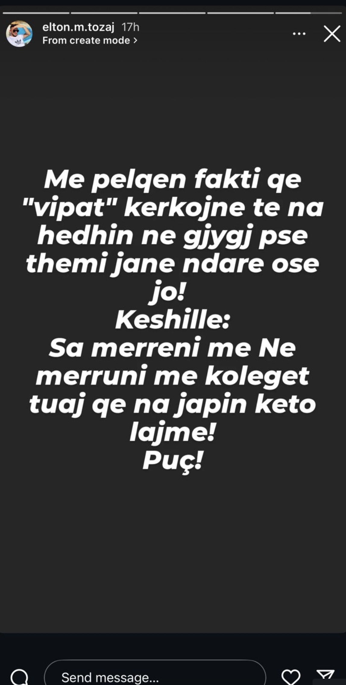 Elton Tozaj ka publikuar një status ku shprehet se është përballur me thirrje në gjykatë pasi ka zbuluar lajmin se një çift showbiz-i po ndahen.