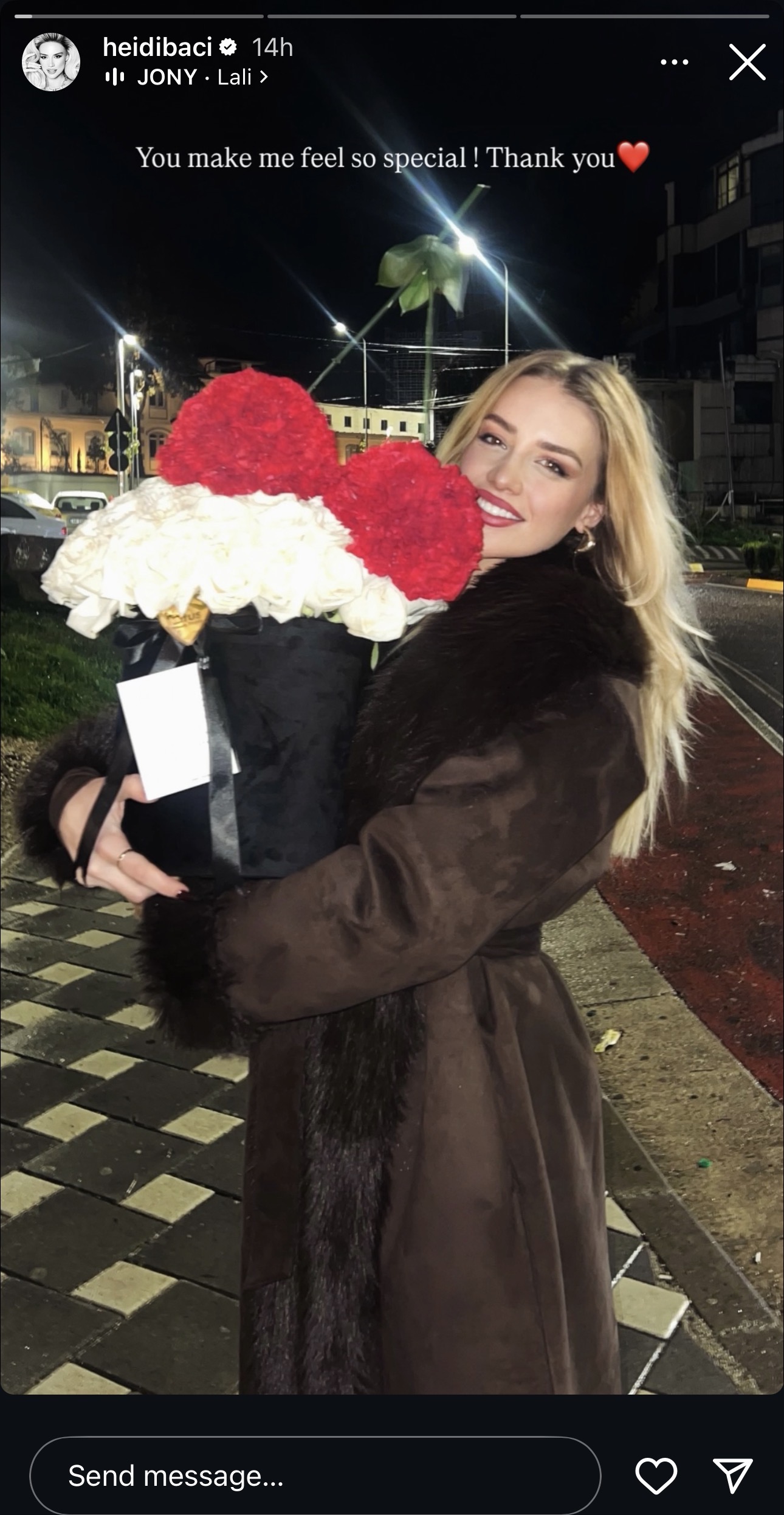 “Ti më bën të ndjehem e veçantë! Faleminderit”,ka shkruar Heidi mbi një nga postimet, duke mos zbuluar identitetin e personit që i ka dërguar dhuratat.