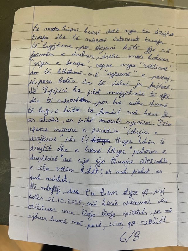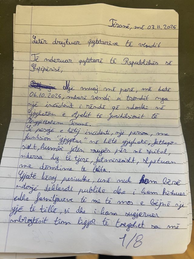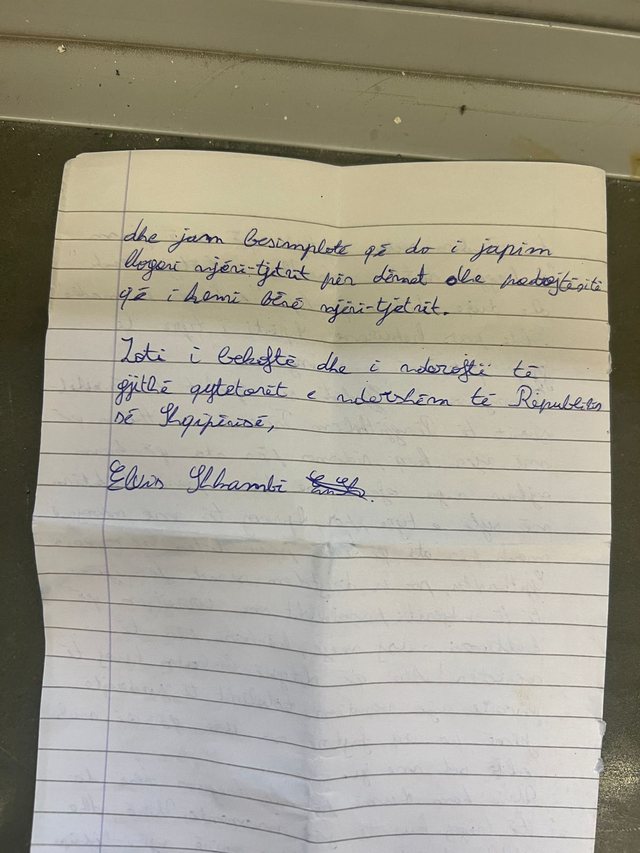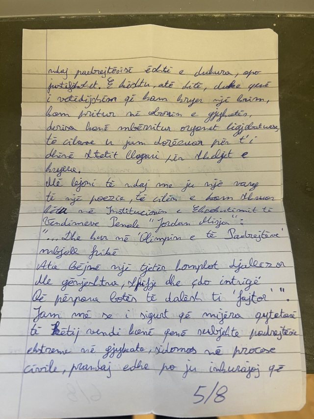 Autori i vrasjes së gjyqtarit Astrit Kalaja, Elvis Shakmbi, në një letër nga burgu ka shprehur keqardhje për dhimbjen që ka shkaktuar.