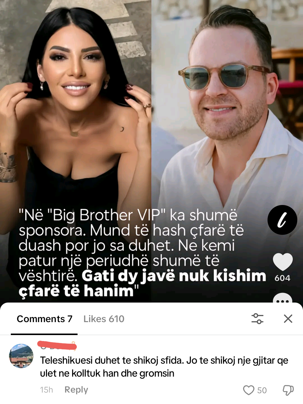 Këto komente, përfshirë ato si “buk e vaj se me pushime ishe” dhe “Prandaj deshtoi bbva3, se ju te gjithe e kishit mendjen te ushqimi…”, tregojnë qartë se publiku nuk e mbështeti ankesën e ish-banores, duke e parë atë si të palogjikshme për një format loje dhe sfidash.