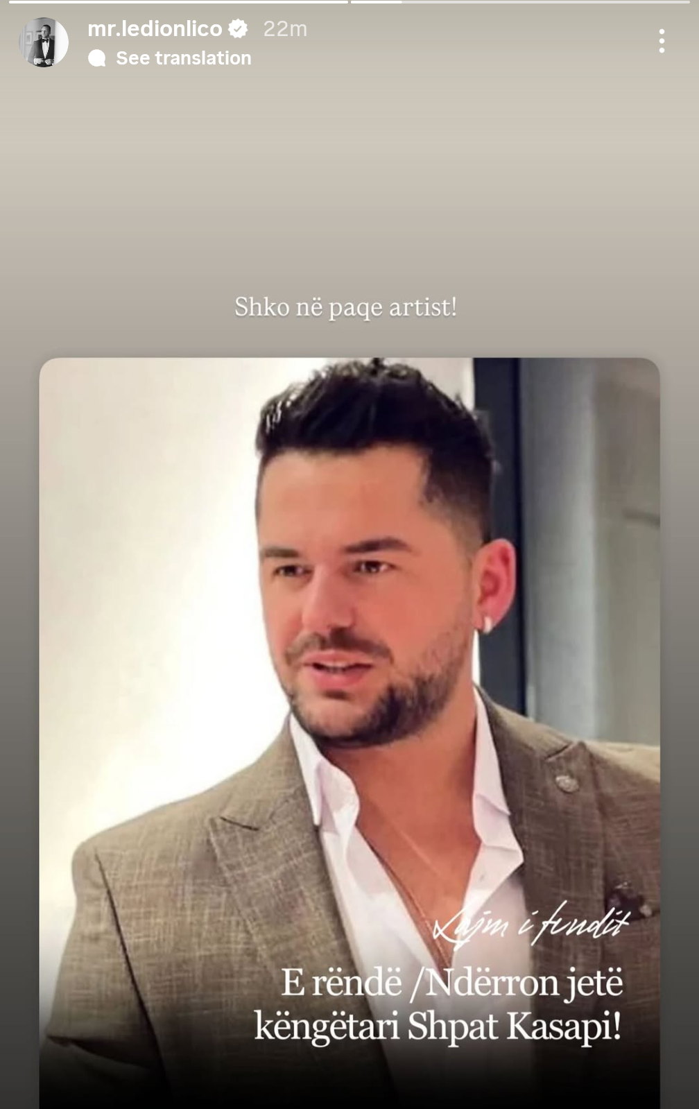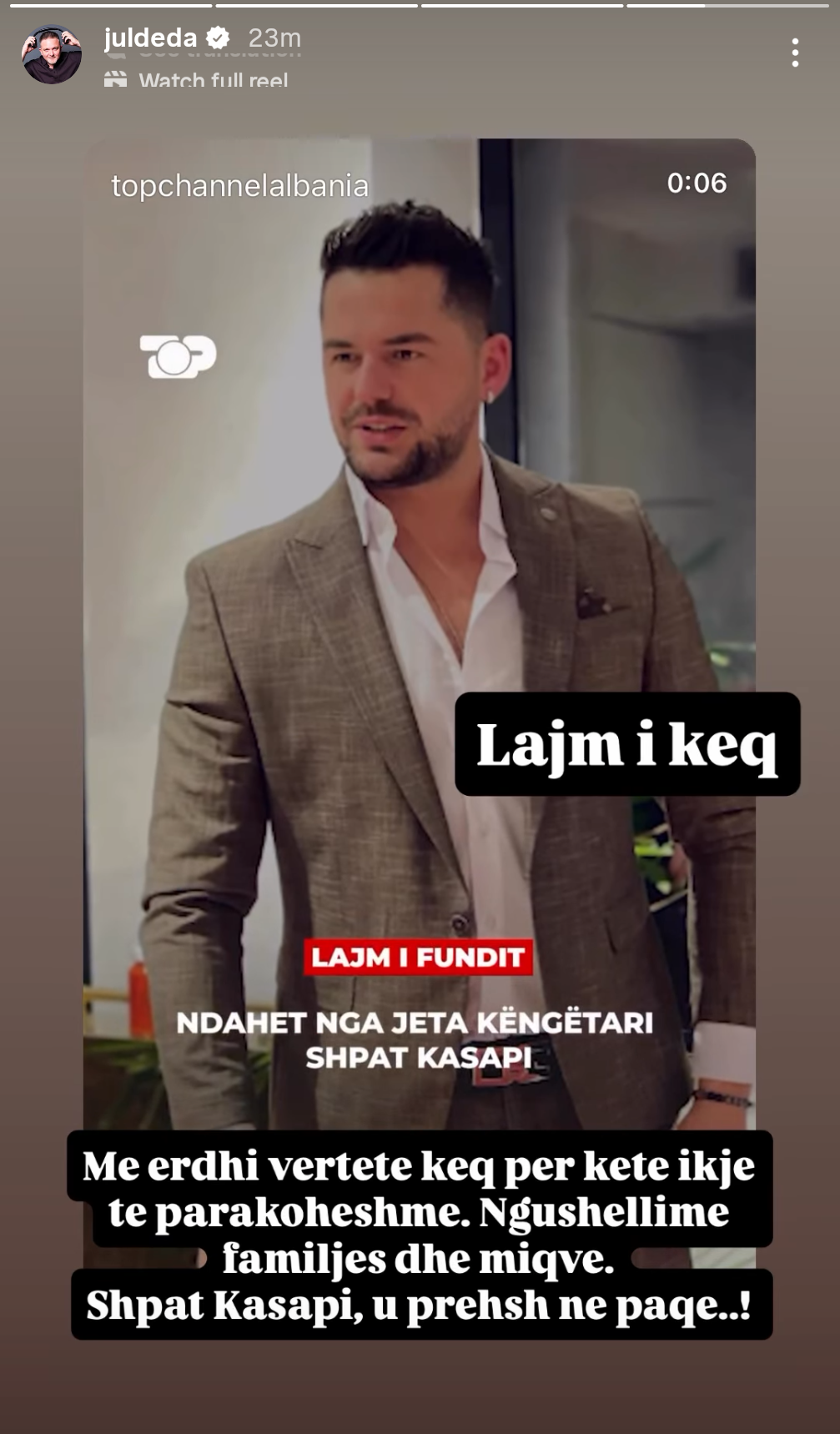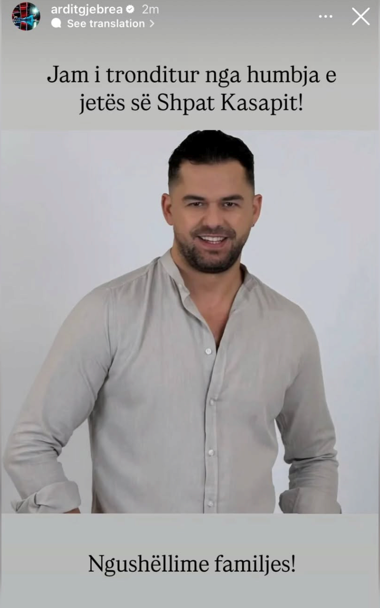 Kantautori Ardit Gjebrea u shpreh shkurt por me dhimbje: “Jam i tronditur nga humbja e jetës së Shpat Kasapit! Ngushëllime familjes!”