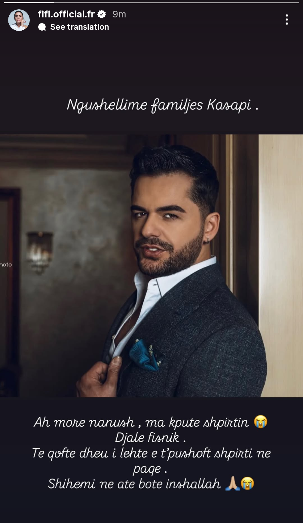 Këngëtarja Fifi reagoi me fjalë zemre: “Ah more nanush, ma kpute shpirtin 😭 Djale fisnik. Te qofte dheu i lehte e t’pushoft shpirti ne paqe.”