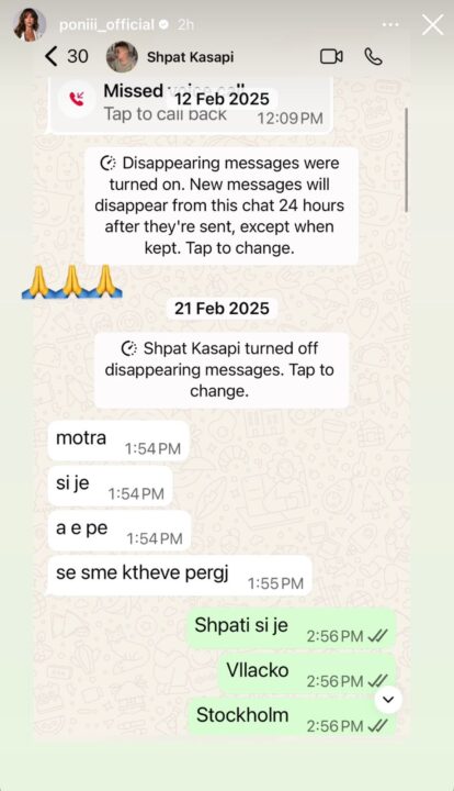 Në mesazhet e shkëmbyera, Shpati i shkruante: “motra… si je… a e pe… se sme ktheve pergj”. Ndërsa Poni i ishte përgjigjur me dashamirësi: “Shpati si je… Vllacko… Stockholm”.