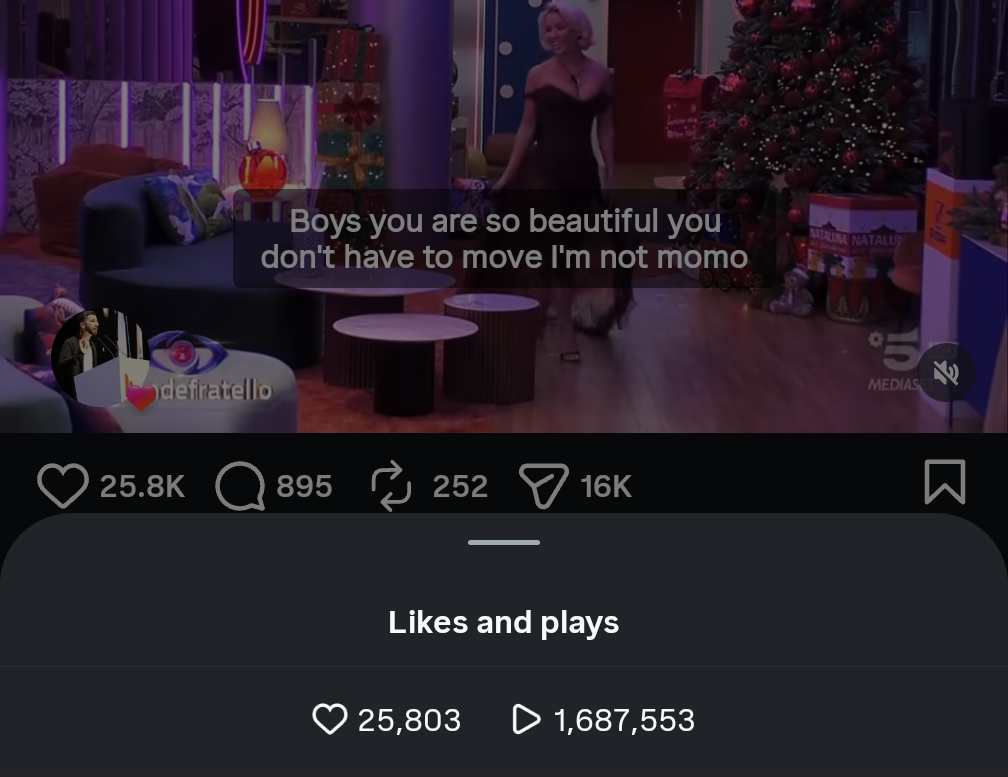 Klipi i hyrjes së saj në shtëpi dhe mënyra origjinale e prezantimit me banorët ka tërhequr vëmendje masive në Instagram. Vetëm në më pak se 48 orë, videoja ka grumbulluar mbi 1.6 milionë shikime, duke lënë pas çdo video tjetër të publikuar nga faqja zyrtare e “Grande Fratello” gjatë javëve të fundit.