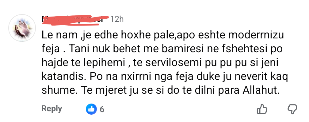 “Nuk bëhet bamirësia për të dalë në internet dhe m’u lavdëru,” shkruan një komentues, ndërsa të tjerë e akuzojnë se me këto veprime po e “modernizojnë fenë” në mënyrë të gabuar.
