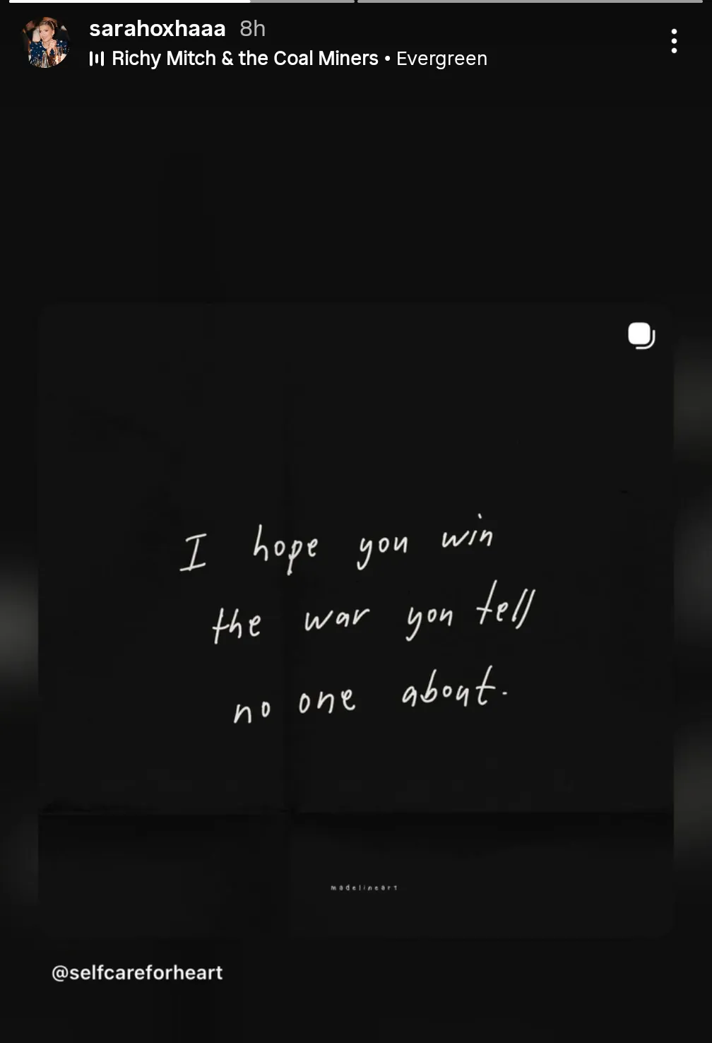 Ajo ka shpërndarë një shprehje që flet për betejat e brendshme: “Shpresoj ta fitosh luftën për të cilën nuk i tregon askujt”.