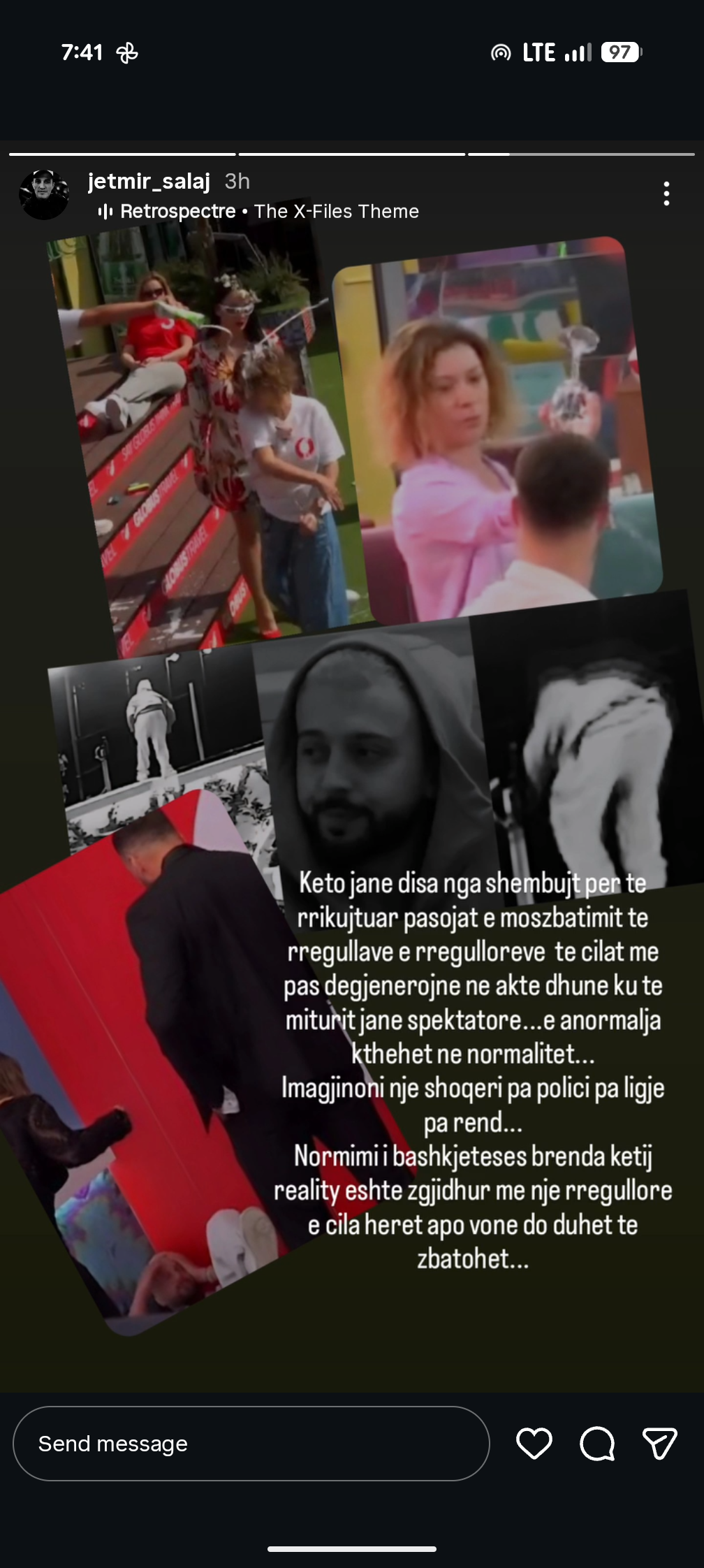 Përmes disa postimeve në Instagram, Jetmiri ka dënuar sjelljet degraduese të disa prej banorëve, duke përmendur ofendimet ndaj Kristit, si “dylber” apo cënimin e hapësirës personale.