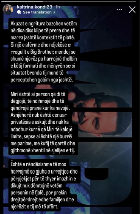 Madje edhe vajza e këngëtarit të ndjerë, Dr. Flori, ka bërë një postim në “Instastory”. Kaltrina shprehet Miri nuk ka cenuar privatësinë e askujt dhe nuk ka ndodhur kurrë që ai të kalojë limite.