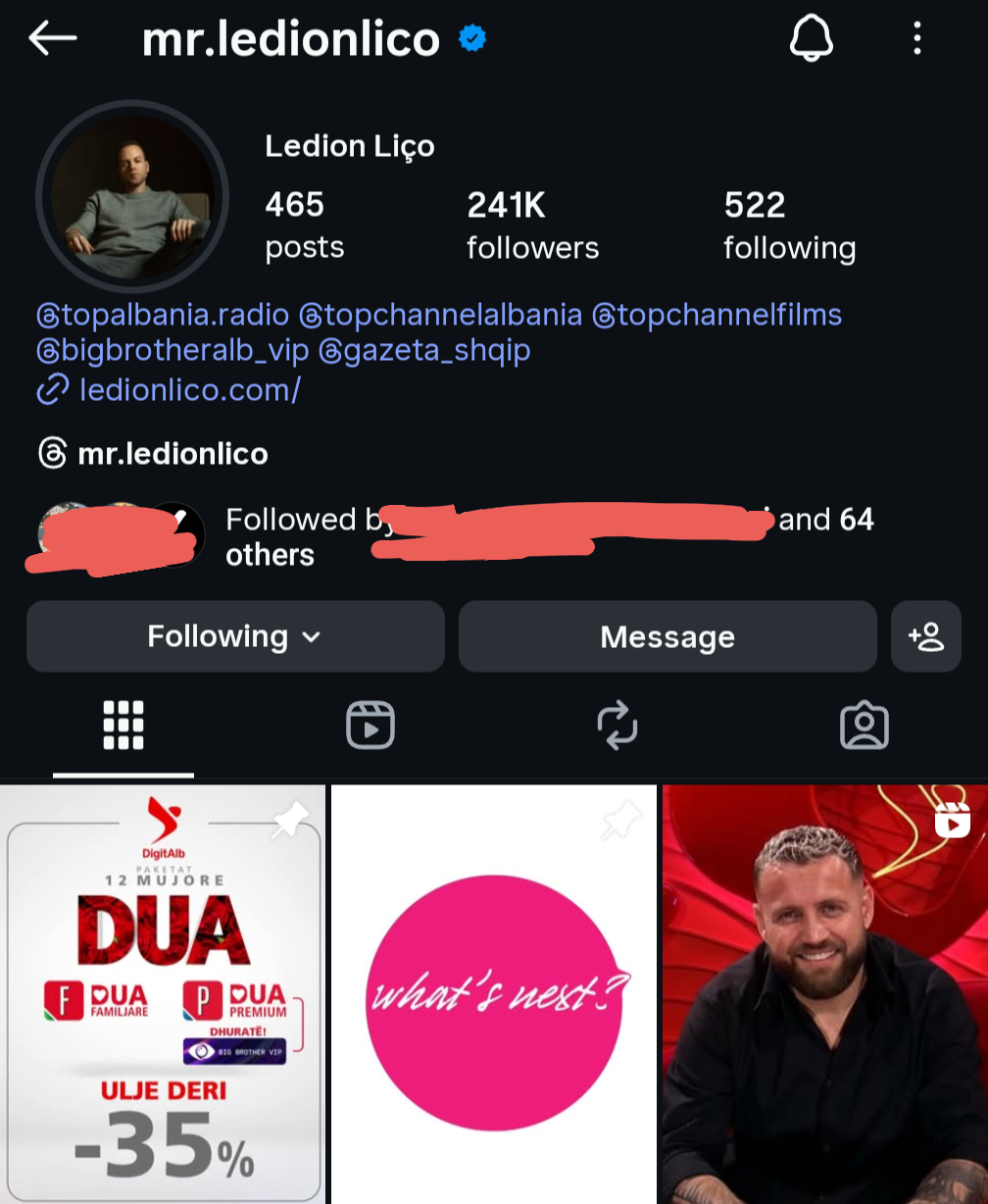 Pas publikimit të videos ku Luizi shfaqej në dhomën e rrëfimit, Ledion Liço e ka shpërndarë menjëherë këtë moment në profilin e tij zyrtar në Instagram. Postimi, i cili është një bashkëpunim (collab) me Top Channel, shfaqet tashmë në “feed-in” e moderatorit, duke vulosur rikthimin e fituesit të BBV2.