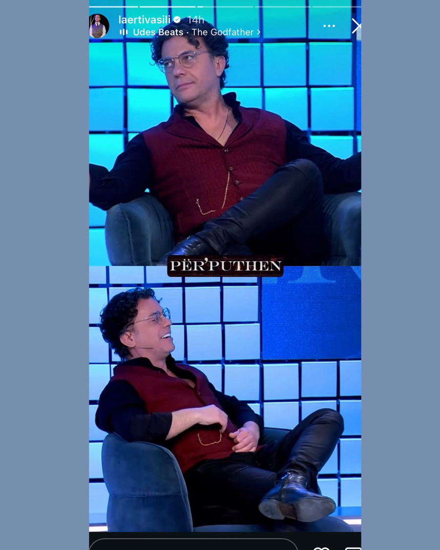 Në Story-n e publikuar, ai shfaqet i ulur në kolltukun e opinionistit, i relaksuar dhe duke qeshur, por detaji që ka marrë vëmendjen është muzika në sfond.