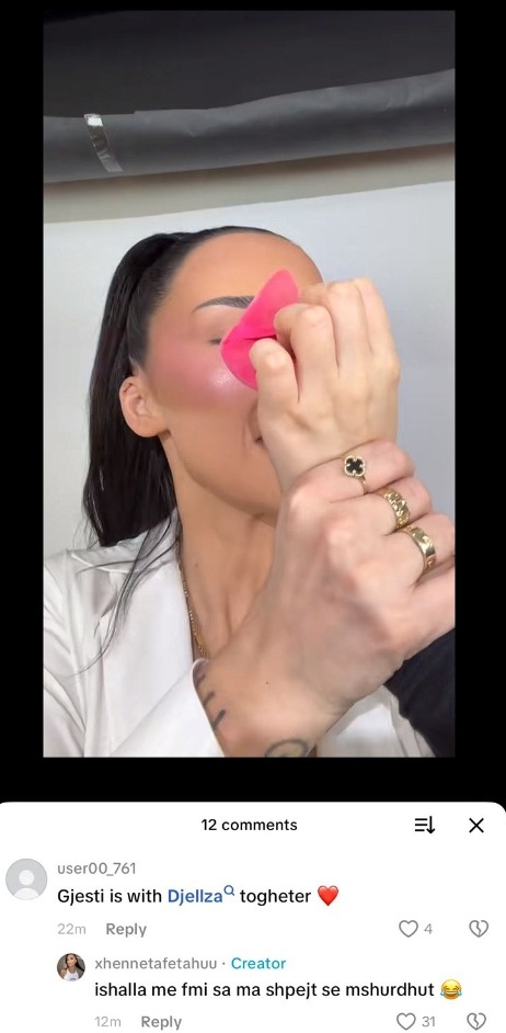 Së fundmi, në një video të publikuar në TikTok, një komentues i ka shkruar se Gjesti është rikthyer në një lidhje me ish-të dashurën e tij, duke marrë një përgjigje të menjëhershme nga Xheneta e cila ka shkruar tekstualisht: