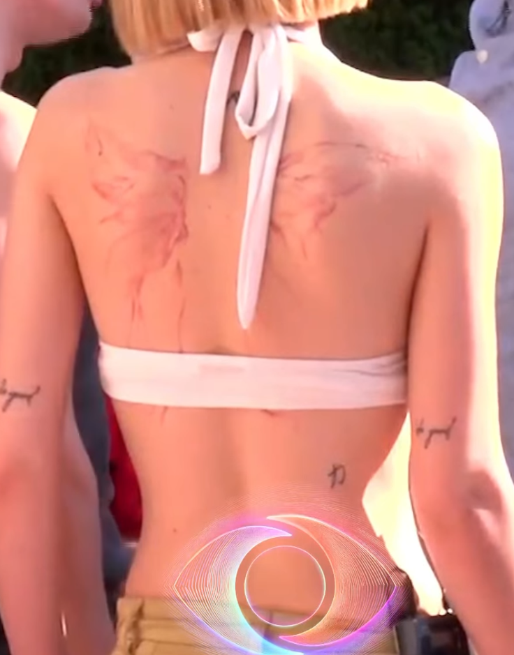 Teksa po qëndronte në ambientet e jashtme të shtëpisë gjatë debatit Mali-Rogert, kamerat kanë fokusuar një tatuazh të madh që ajo mban në kurriz.