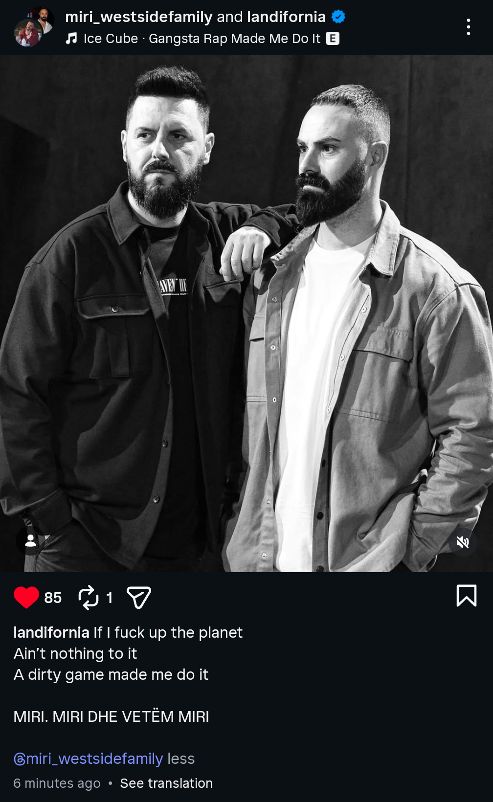 Në llogarinë e tij në Instagram, Landi ka publikuar një foto bardhë e zi ku shfaqet krah Mirit, shoqëruar me një mesazh mjaft domethënës.