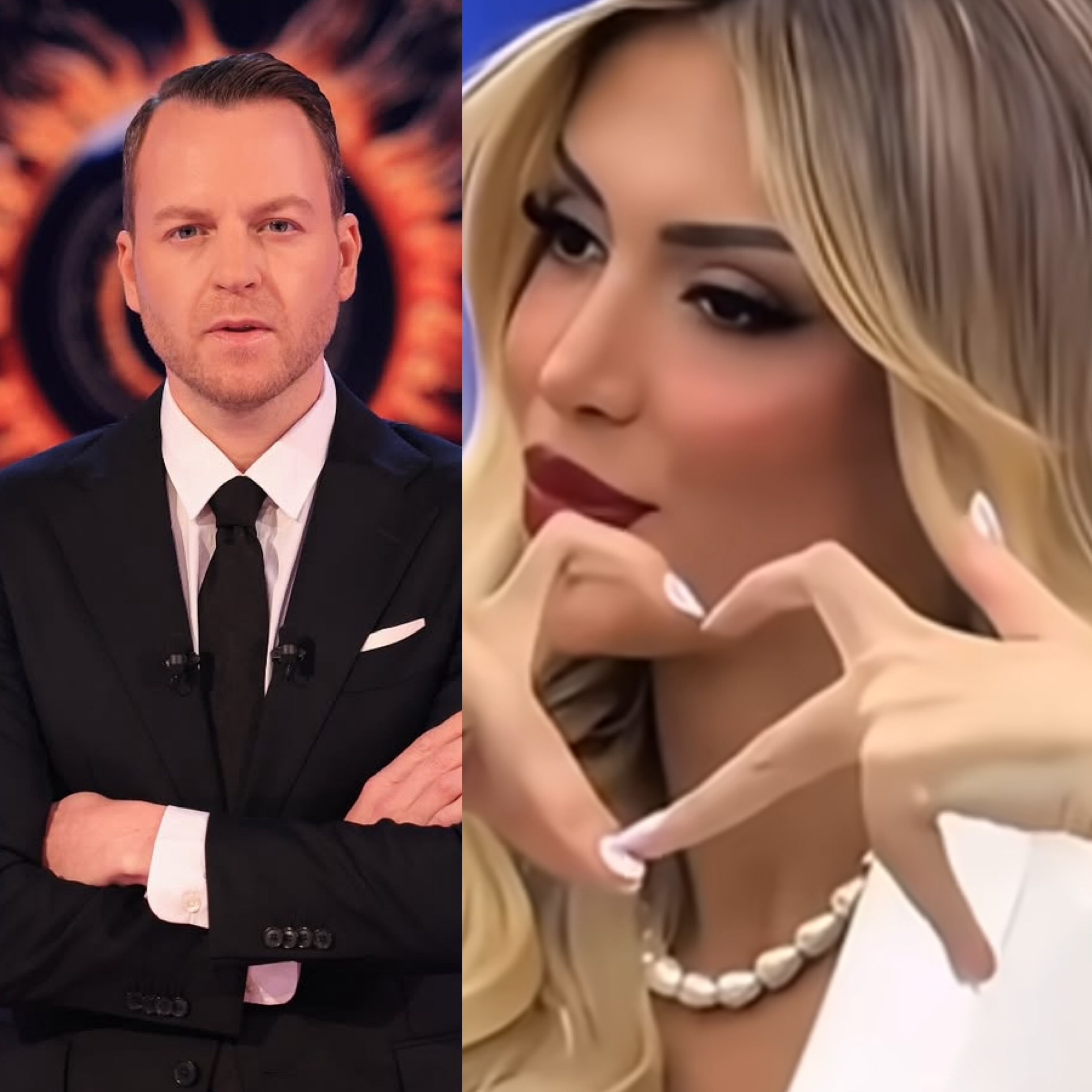 Në hapje të spektaklit të mbrëmshëm, sapo ka zbritur në skenë, moderatori u është drejtuar ish-banoreve të ulura në panel pikërisht me shenjën e famshme të zemrës me gishta.