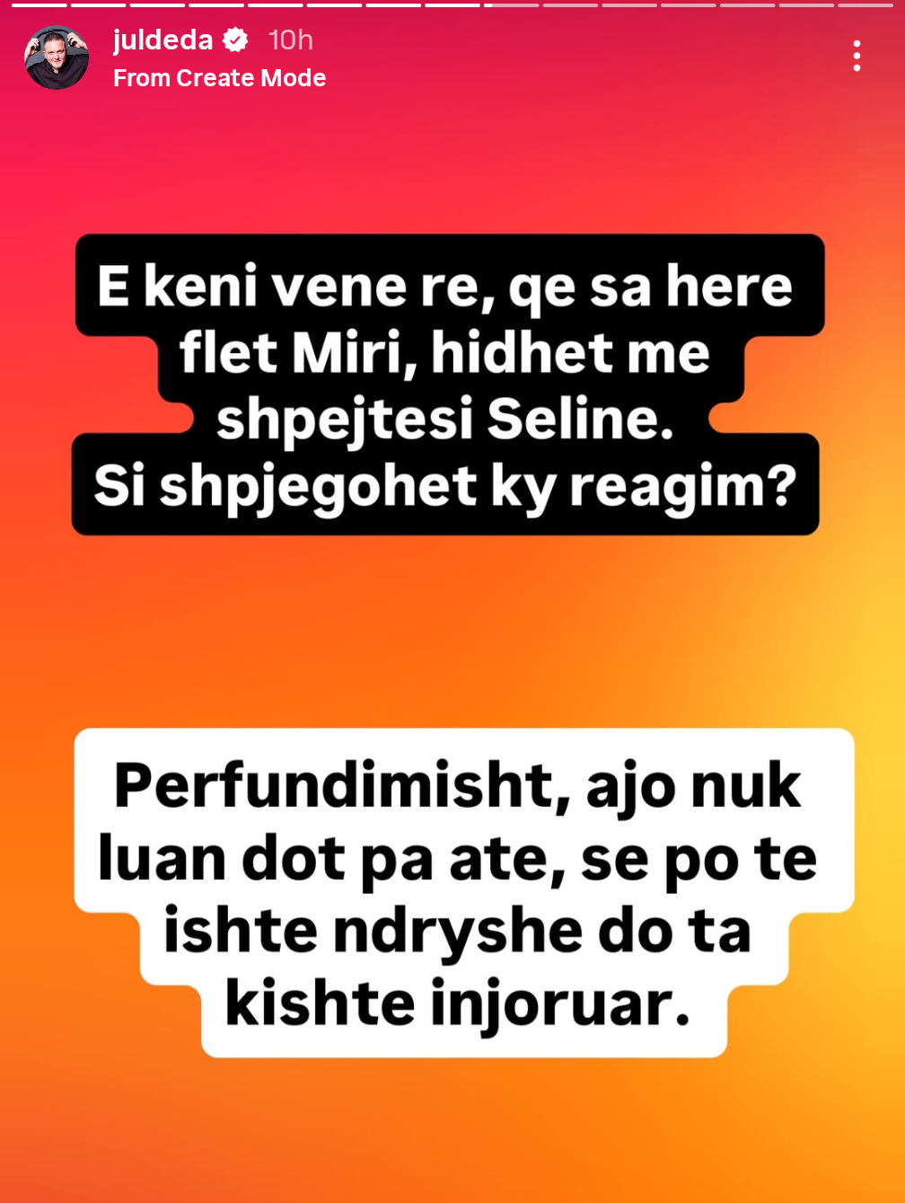 Përmes një postimi në Instastory, Juli ka vënë në dukje një model sjelljeje të Selinës, duke ngritur një pyetje retorike për publikun: