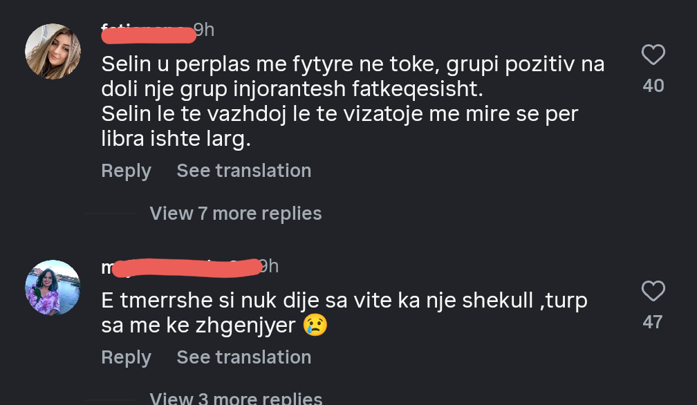 “E tmerrshme si nuk dije sa vite ka një shekull, turp sa më ke zhgënjyer 😢”