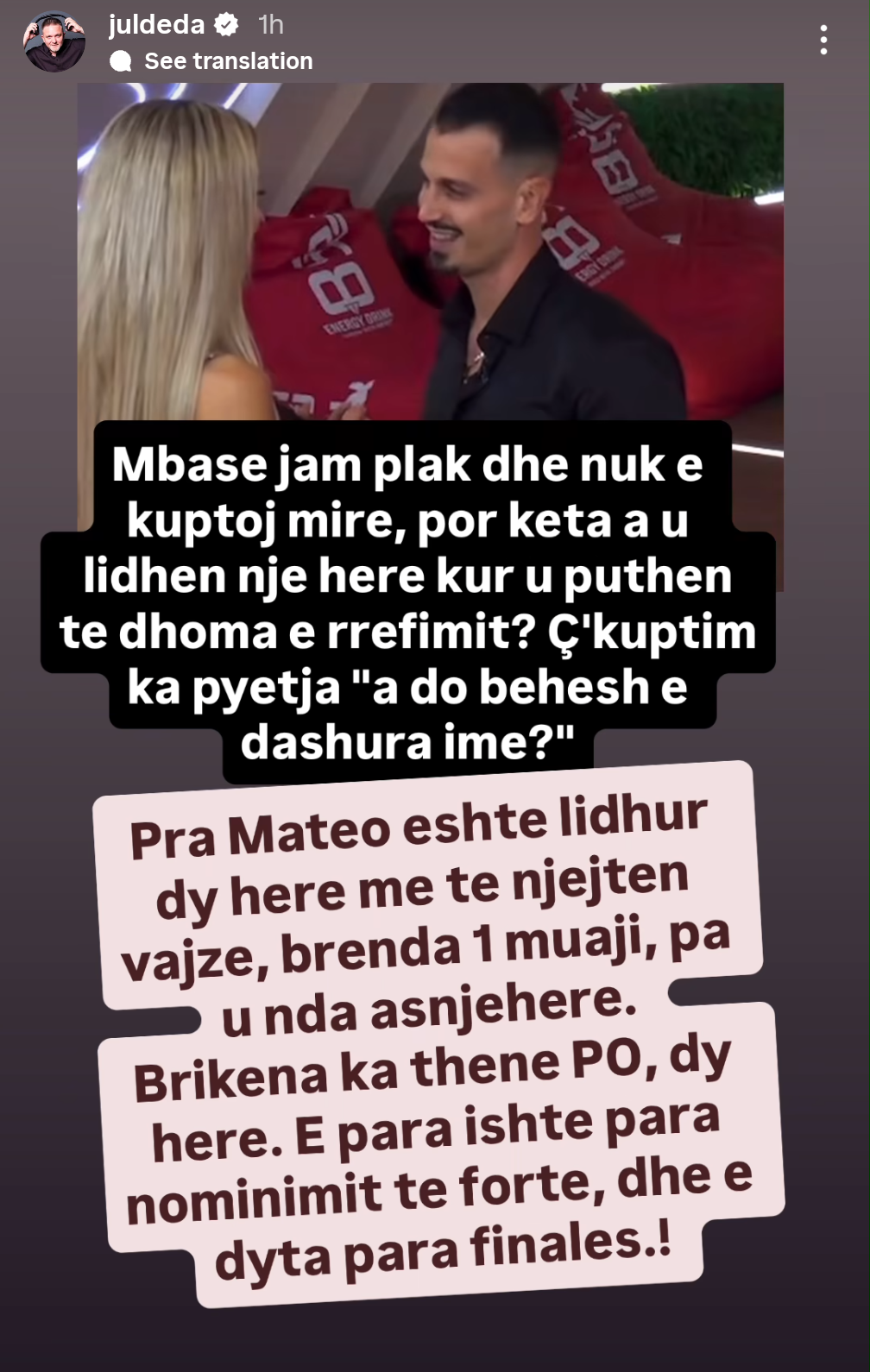 Aktori i njohur dhe ish-finalisti i këtij formati, Julian Deda, ka reaguar me doza të forta ironie dhe skepticizmi përmes një postimi në “InstaStory”.