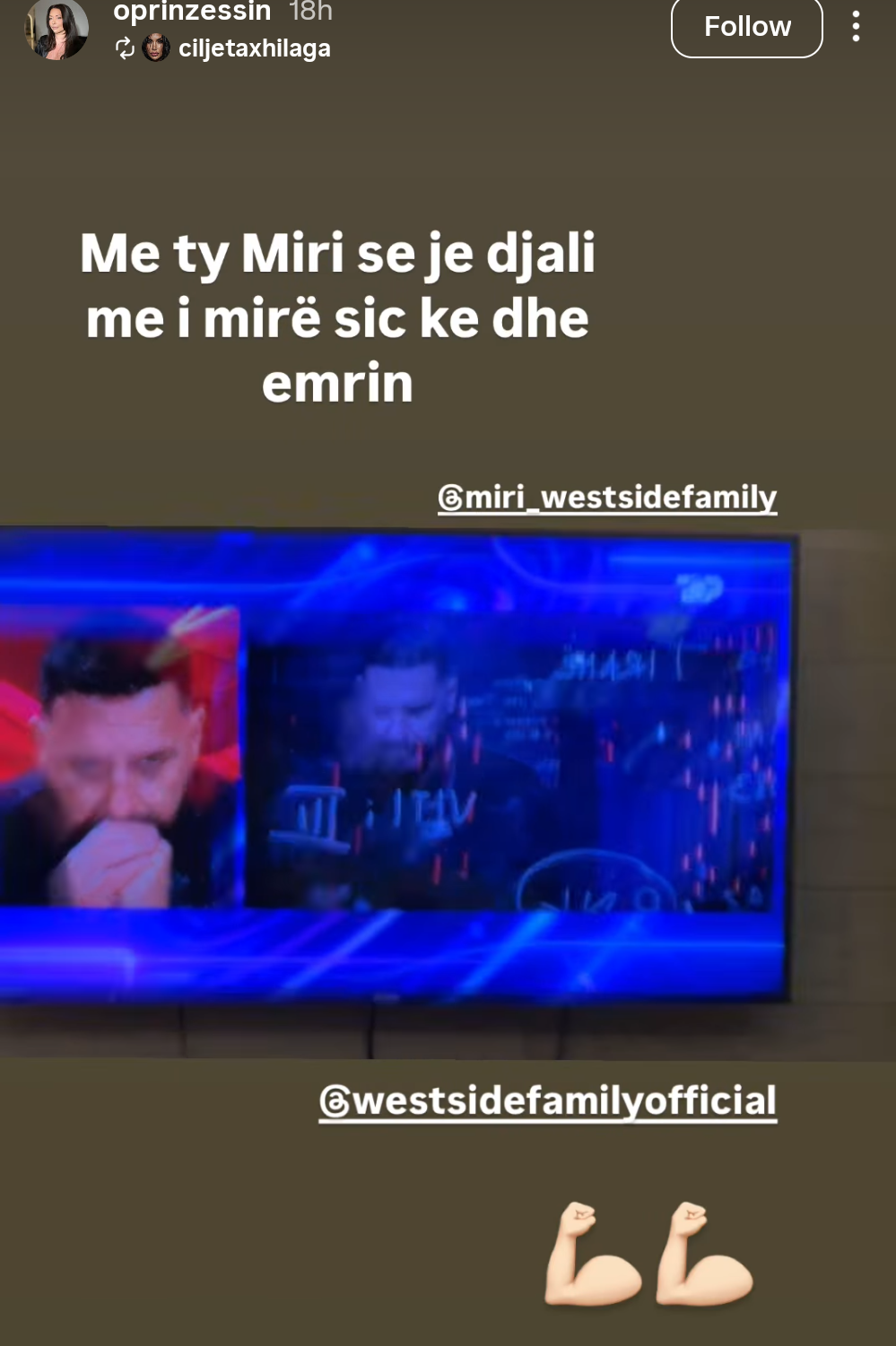 Në të njëjtin postim, ajo nuk ka harruar të etiketojë llogarinë e Mirit, si dhe faqen zyrtare të grupit ikonik “West Side Family”.